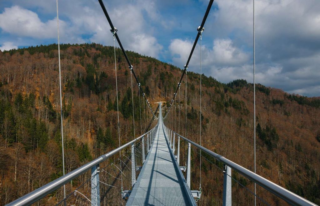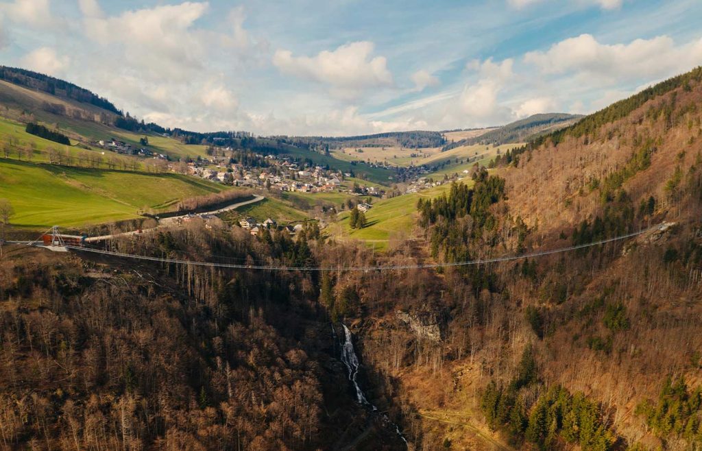 Die BLACKFORESTLINE in Todtnau ist eine beeindruckende Hängebrücke, die sich über eine Länge von 450 Metern erstreckt und in einer Höhe von 120 Metern über den Todtnauer Wasserfällen schwebt. Seit ihrer Eröffnung im Mai 2023 bietet sie Besuchern ein unvergleichliches Erlebnis im Herzen des Schwarzwalds.