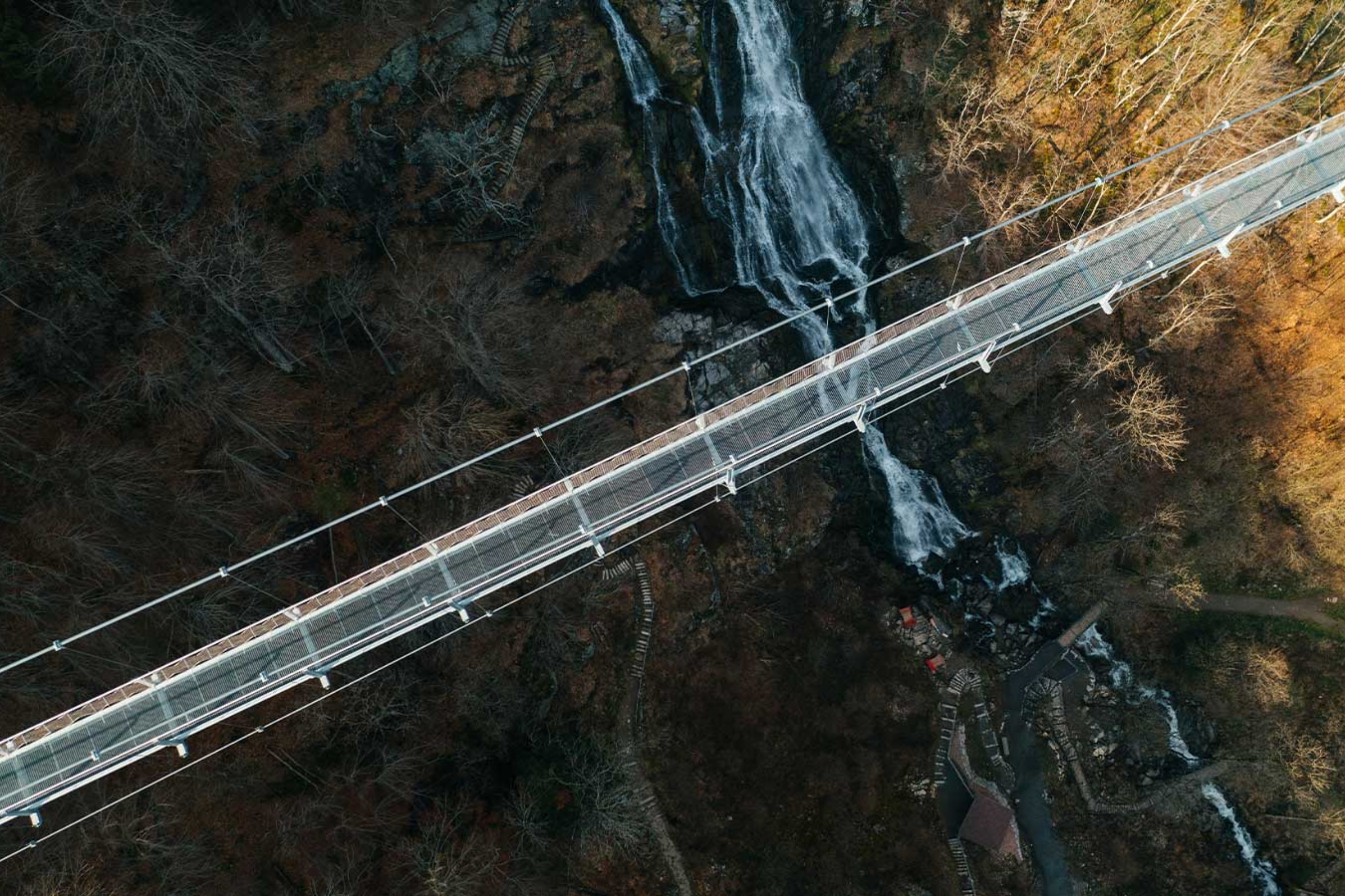 Mit jedem Schritt auf der 1,20 Meter breiten Brücke spürst Du das Kribbeln der Höhe und genießt atemberaubende Ausblicke auf die umliegende Natur. Unter Dir rauschen die imposanten Wasserfälle, während sich der Blick über die dichten Wipfel der Schwarzwaldtannen erstreckt. Die BLACKFORESTLINE ermöglicht es, die Schönheit des Hochschwarzwalds aus einer völlig neuen Perspektive zu erleben.